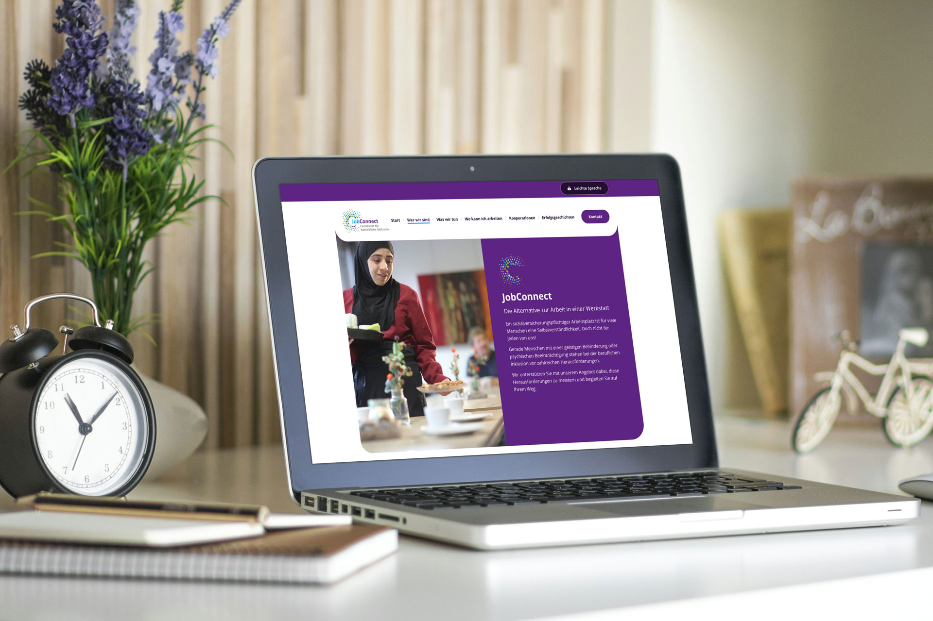 Damit dieses wichtige Angebot auch digital sichtbar wird, sollte ein neuer Webauftritt entstehen – barrierefrei, klar strukturiert und für alle Nutzergruppen intuitiv bedienbar. Die Seite sollte informieren, Orientierung bieten und Vertrauen schaffen. Besonders wichtig war es, die unterstützenden Leistungen von JobConnect nachvollziehbar und niedrigschwellig zu vermitteln, sowohl für Arbeitssuchende als auch für potenzielle Arbeitgeber.
